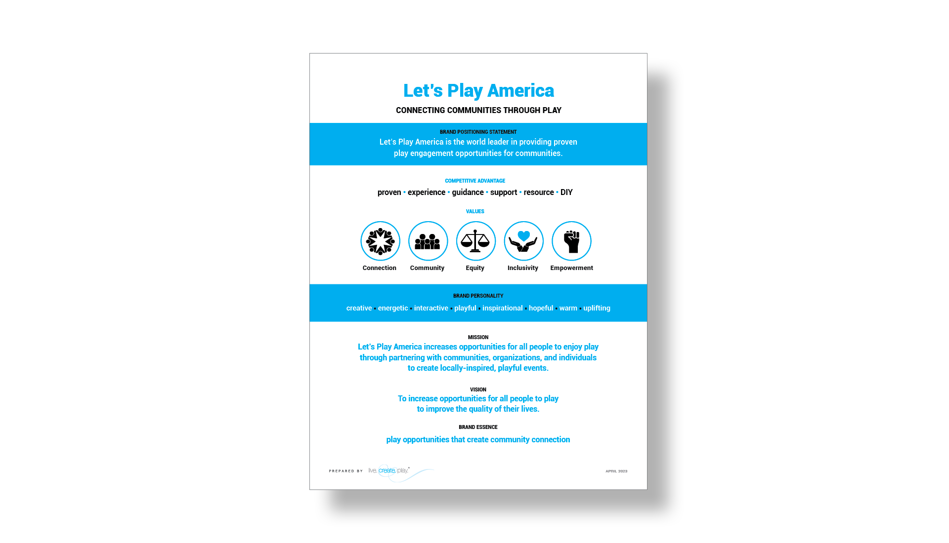 Let’s Play America’s (LPA) logo reflected the spirit of the organization when it first started. After years of honing their products and services at a local level, they were ready to step out onto the larger world stage and sought to express a more inclusive mark that captured the essence of playfulness.
